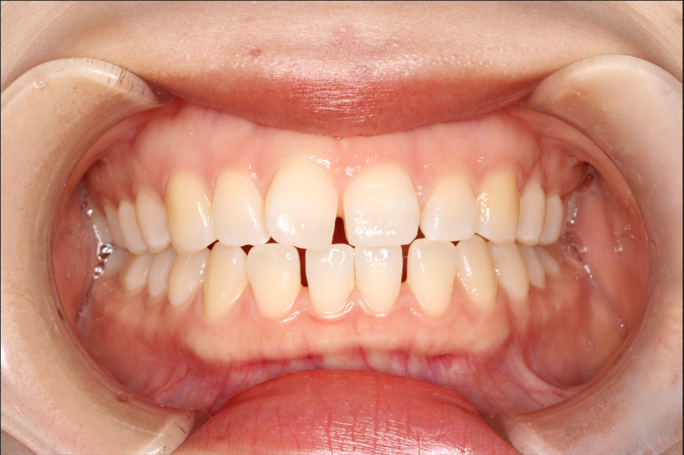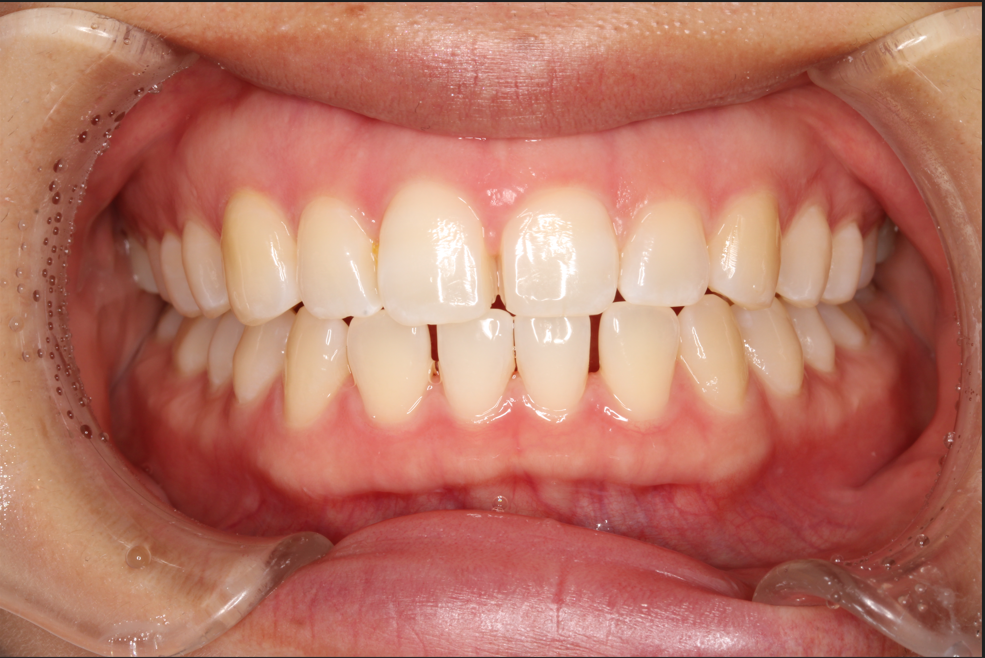 | 主訴 | 【主訴】ディープバイト,すきっ歯 【診断・症状】左上C残存、下顎右下1番欠損、上顎前突、空隙歯列、過蓋咬合 |